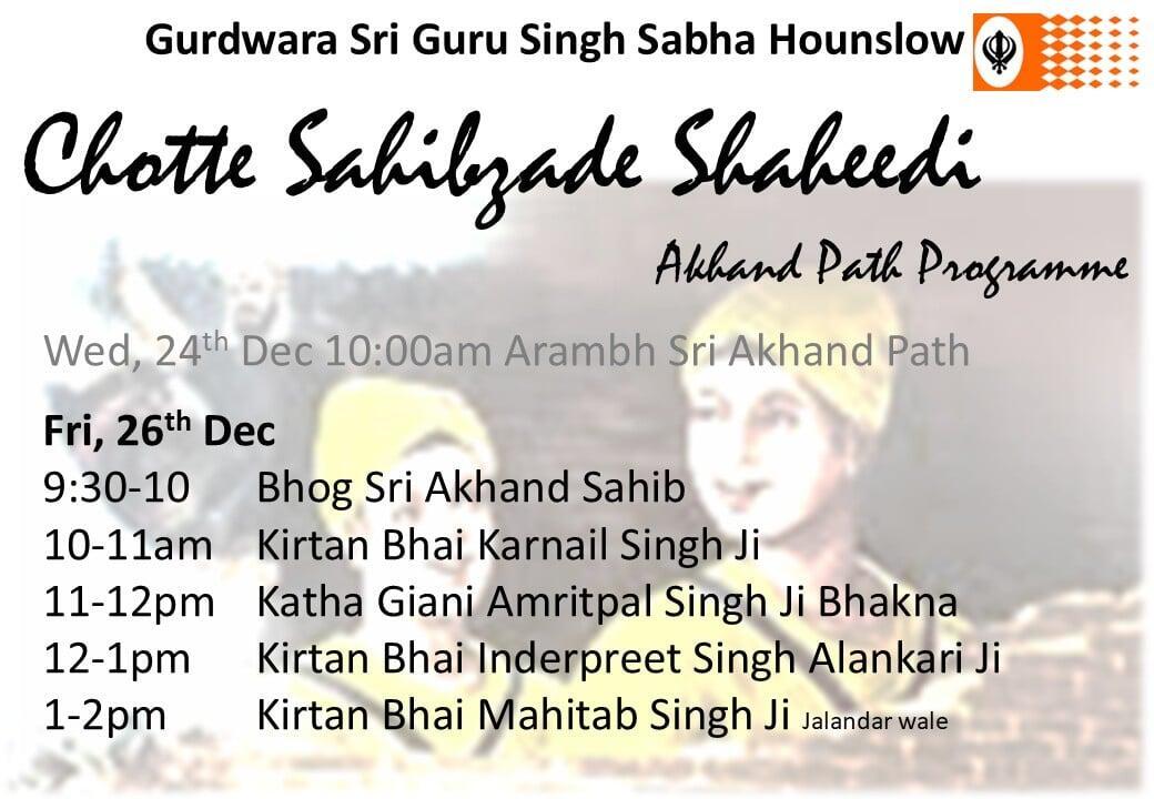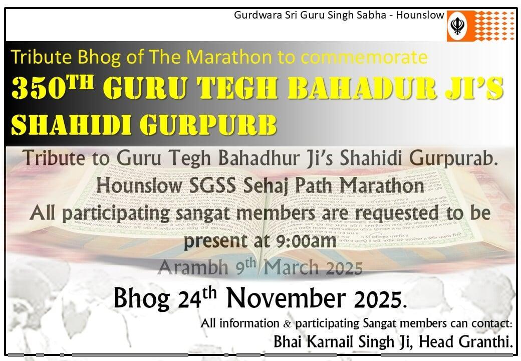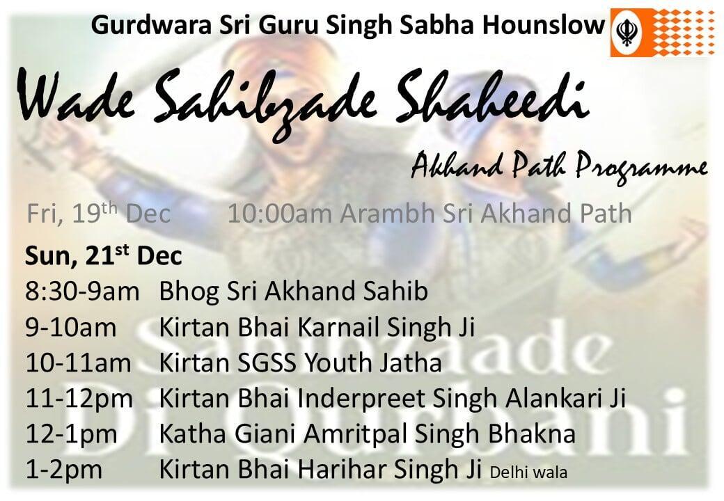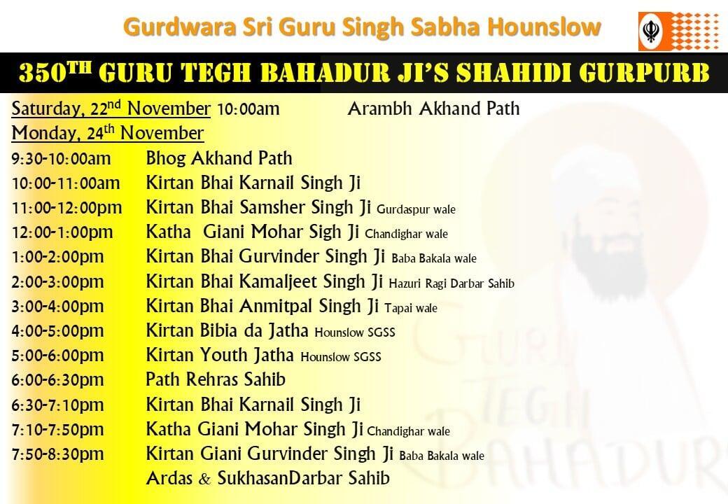 Apart from the Daily scheduled programmes at the Gurdwara, the following are the additional events taking place: