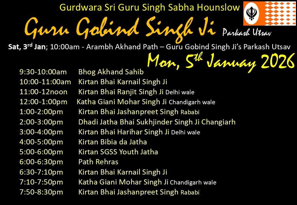 Jan 5 - Gurpurbh Sri Guru Gobind Singh Ji Parkash Utsav