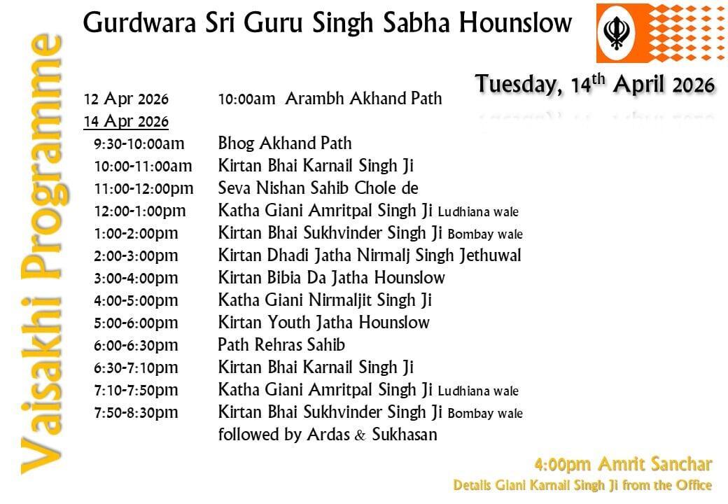 Apr 14 - Vaisakhi (Akhand Path Arambh 12th - Bhog 14th)